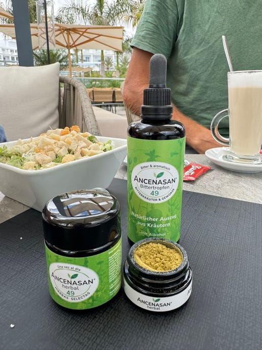 Una mezcla única de 49 hierbas y plantas exclusivas en polvo que contienen sustancias amargas. Esta receta ya está aprobada desde hace 20 años.